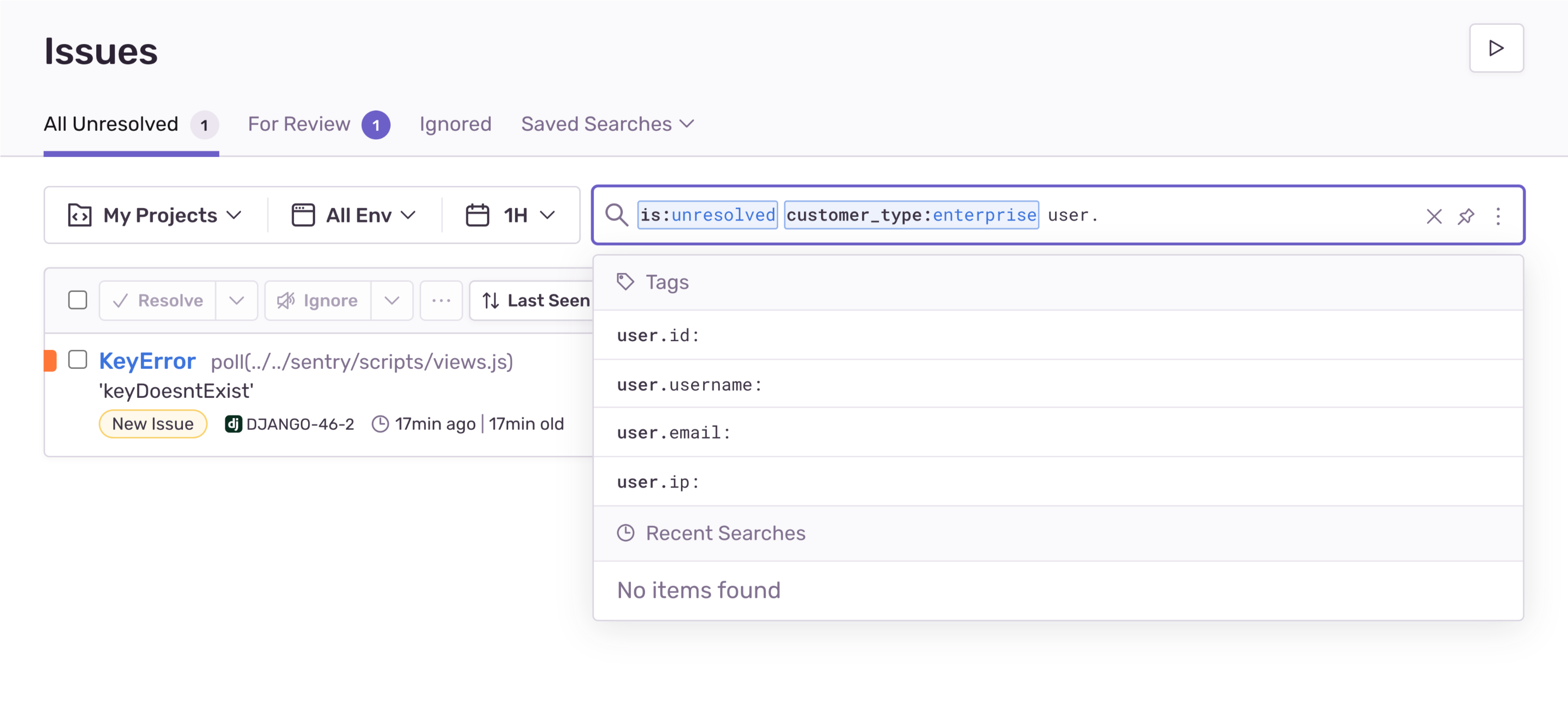 . While these fields are unsearchable, they enrich your events with information that will help you debug and resolve the associated issues.Structured Data - Key/value pairs that are indexed and searchable, allowing you to search, filter, and query through all your events across projects, in addition to helping you debug specific issues. These include: