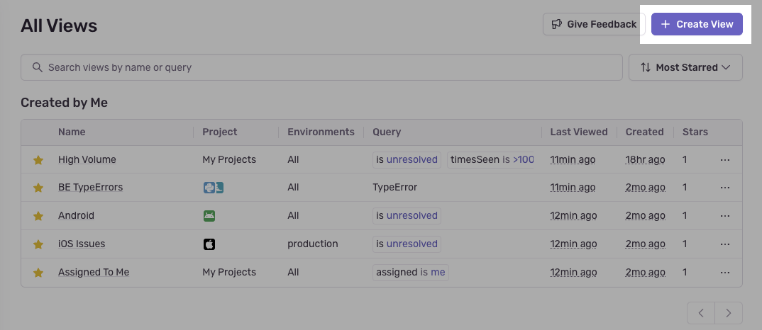 Issue views let you customize and share your issue stream, so you and your teammates can quickly see the issues that are most relevant to you.